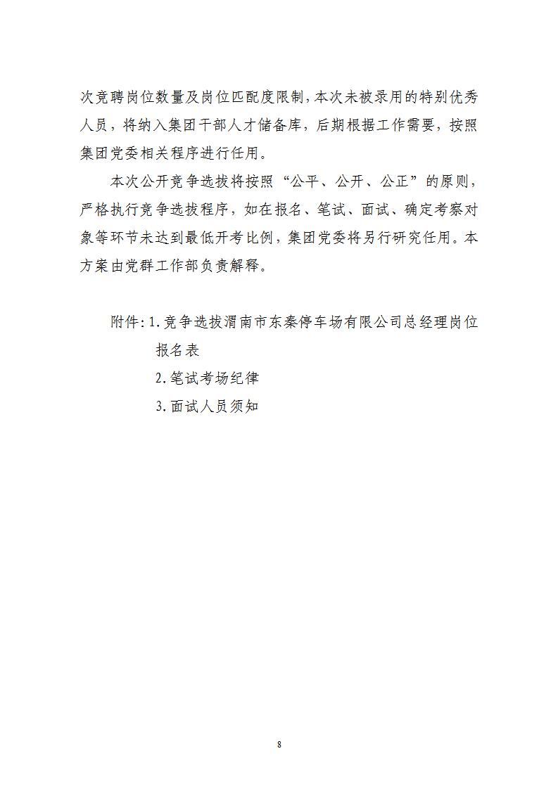 渭南市東秦停車場(chǎng)有限公司總經(jīng)理崗位競(jìng)聘公告